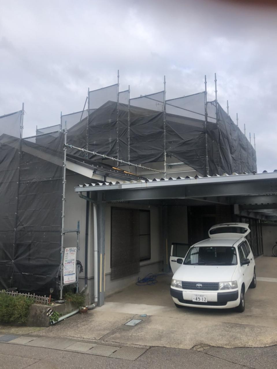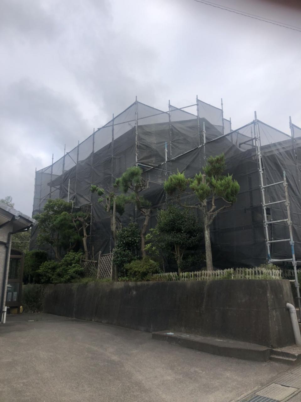 工事内容:築年数が経った一般住宅における外壁改修工事に伴う足場工事を設置して