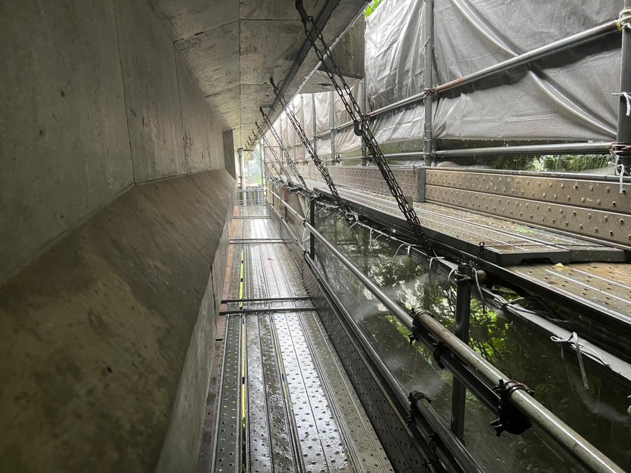 のと里山海道からは見えない足場ですが、通行する皆さんやメンテナンスされる人達